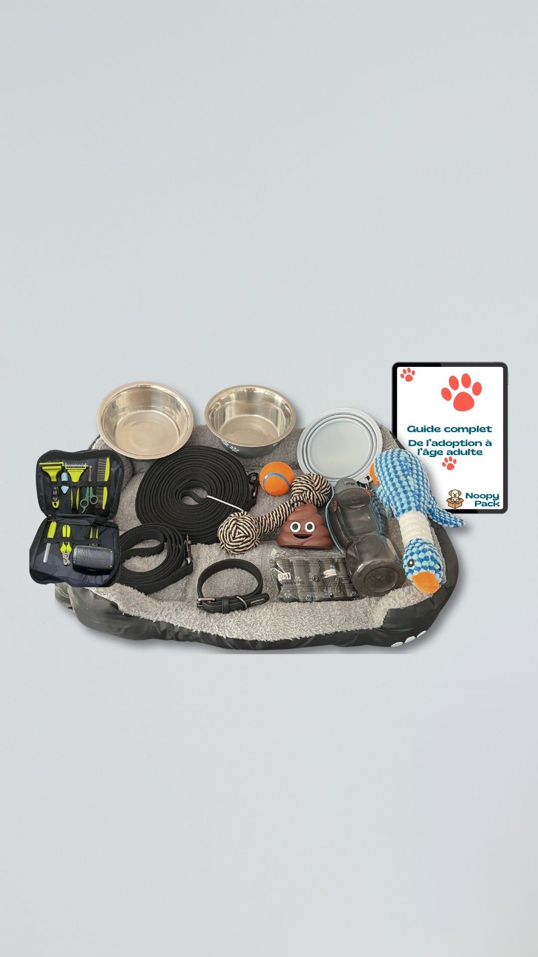 Noopy Pack est un pack complet conçu pour accompagner l’arrivée d’un chiot en toute sérénité. Il est né d’un constat simple : trop d’achats inutiles, trop de stress et peu de repères pour les nouveaux adoptants. Notre mission est de réunir l’essentiel, sans superflu.